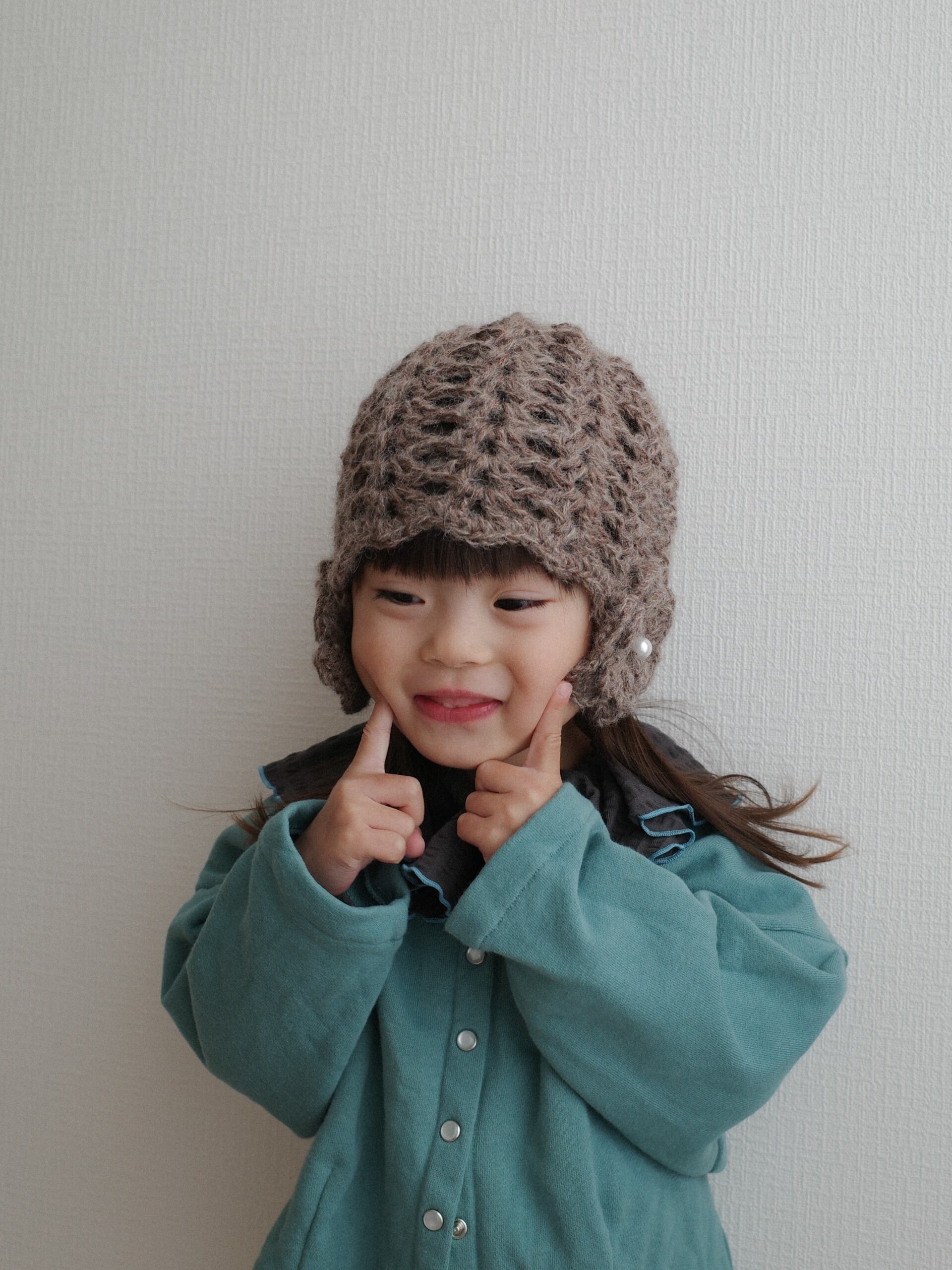 ざっくり編み目のふわふわニット帽。