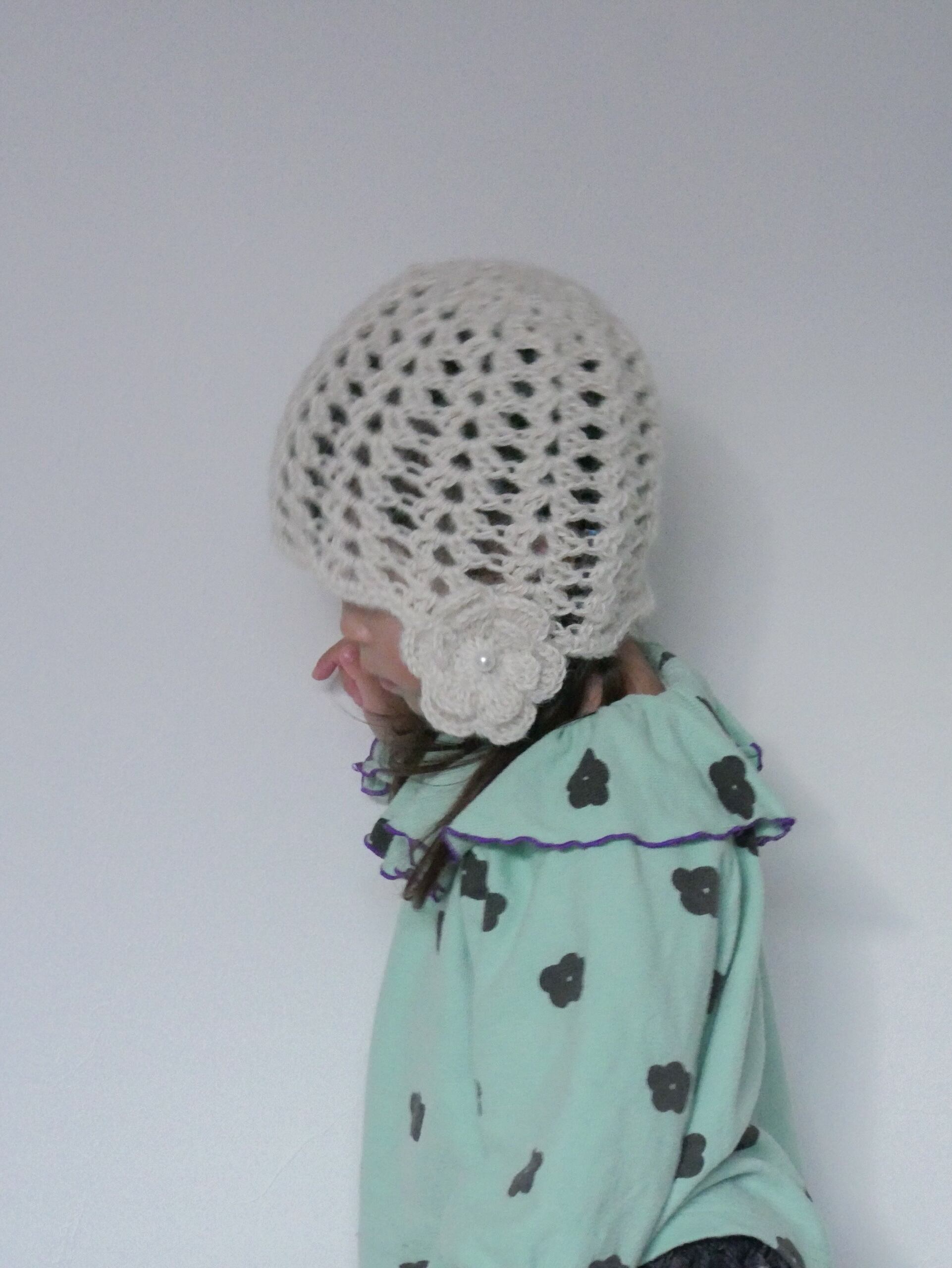 # fluffy flower hat ( kids size )